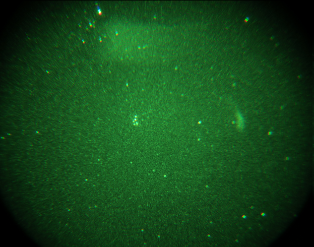 拖线问题其实不明显,因为增像管本身的物理分辨率就不高,并且镜头畸变很大,而且还有光点的亮斑——这是增像管的物理现象,不是过曝导致的。